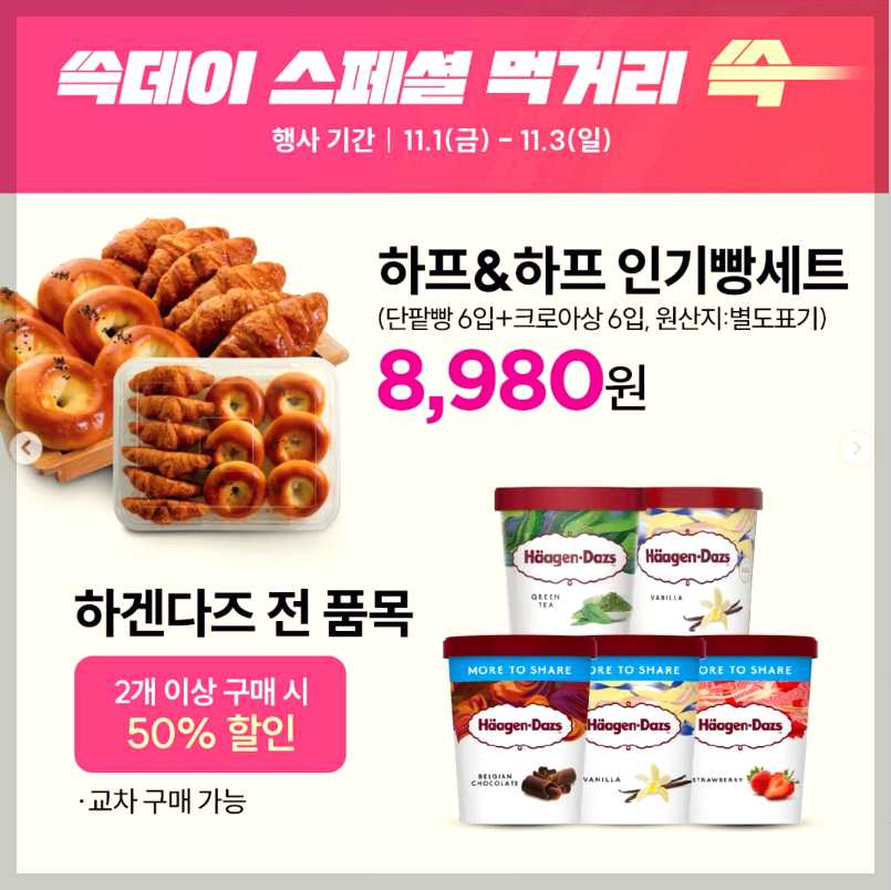 여기에 하겐다즈 아이스크림도 50% 할인된 가격으로 만나볼 수 있으니, 디저트를 좋아하시는 분들은 꼭 체크해보세요